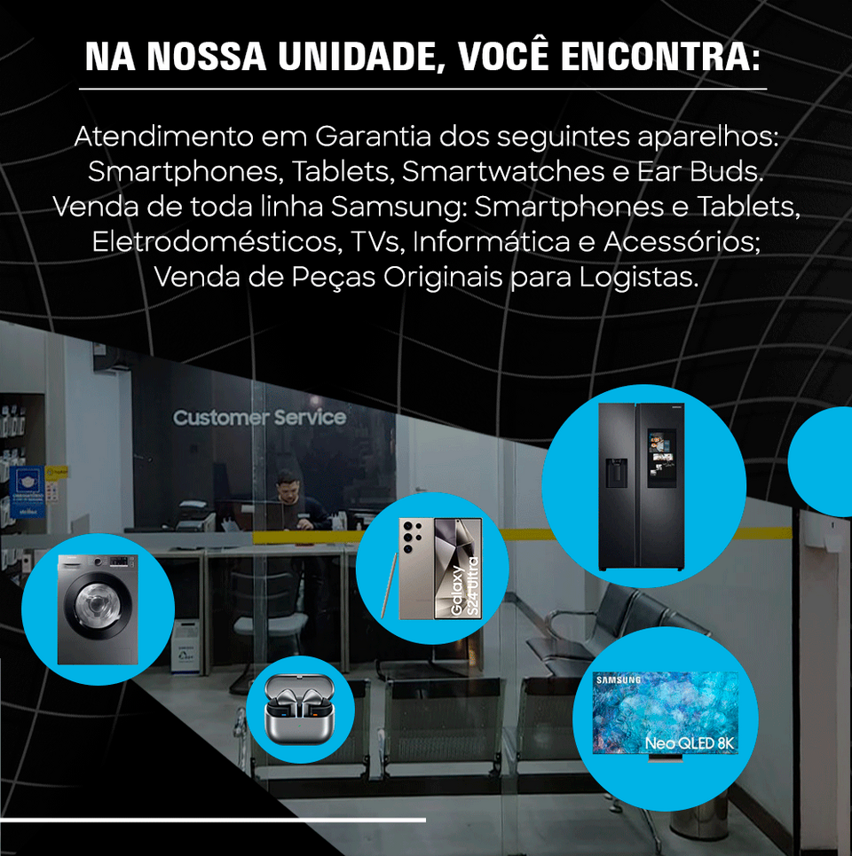 Somos uma unidade autorizada Samsung dedicada a oferecer suporte técnico dentro e fora de garantia.
